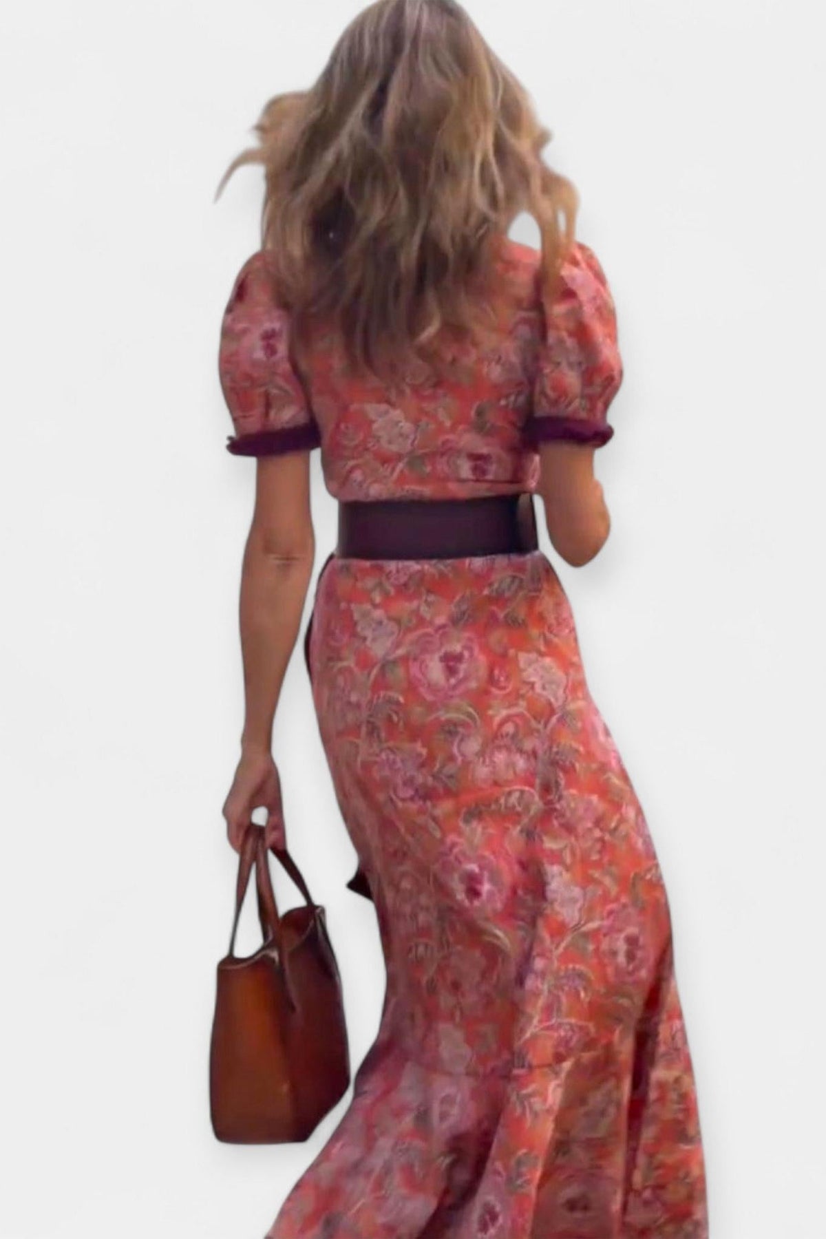 - Bredt taljebælte, der fremhæver silhuetten og skaber let drapering.